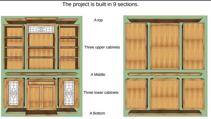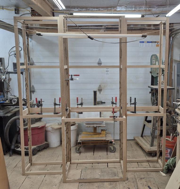 The six cabinet carcasses are glued up