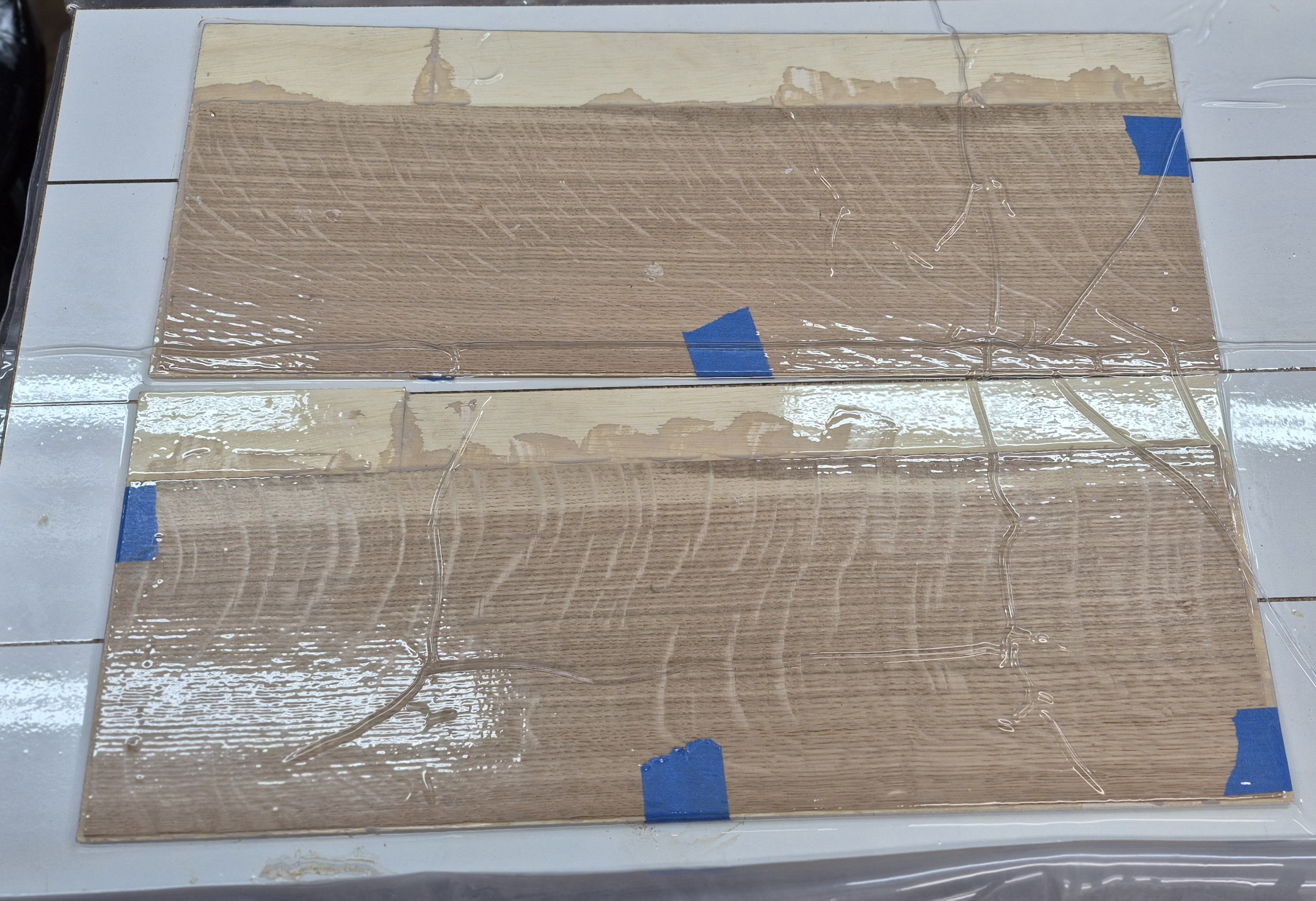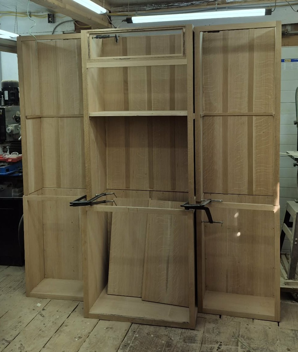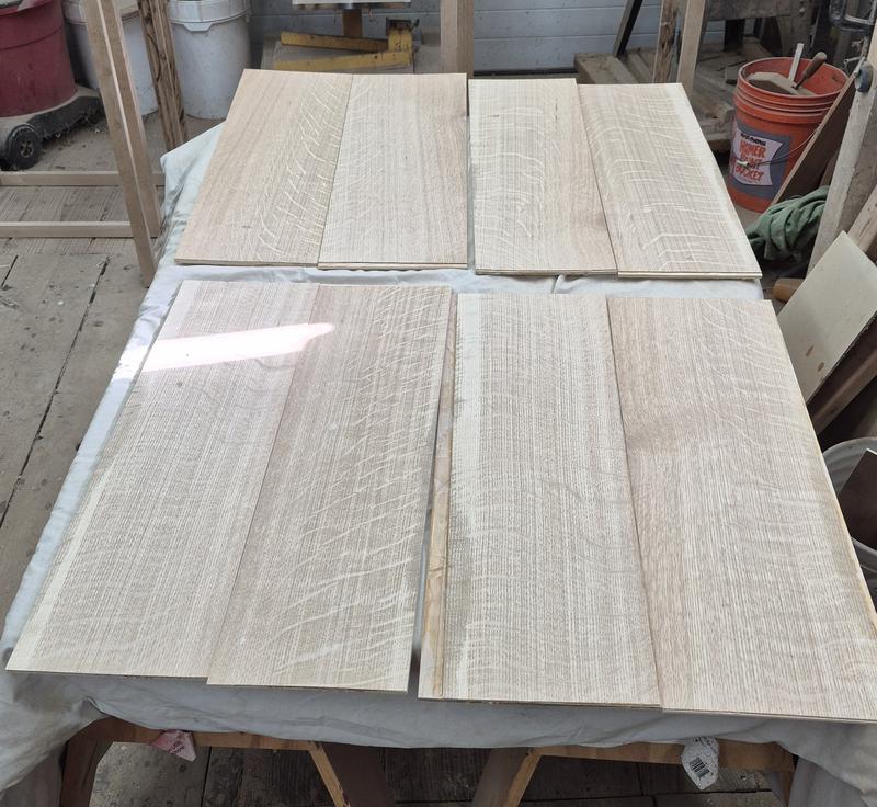 The carcass and Door Panels will be made from Quarter Sawn Whit Oak veneer. There will many sessions of gluing up veneer in the vacuum press.