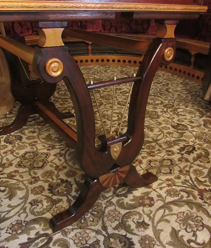 The Desk features harp brackets on"Duncan Phyfe" style leg/base form with Gothic Arch Window structures.